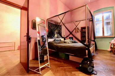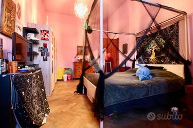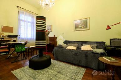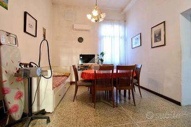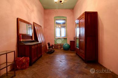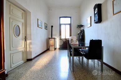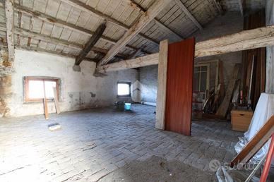 Il primo piano, accessibile da una scalitana in pietra aurisina fiorita, ossia un marmo estratto dalle cave del carso, si disloca nella zona notte che ospita tre camere dalle generose dimensioni, una stanza adibita a ripostiglio e un bagno finestrato dotato di vasca.