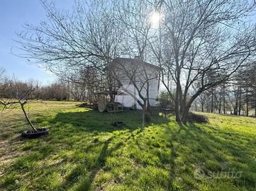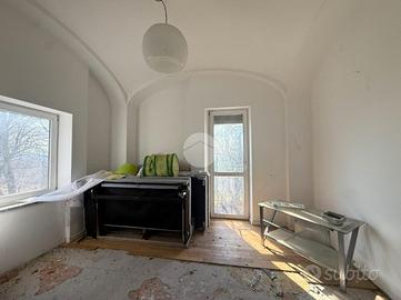 Immersa in un ampio giardino di circa 6.000 mq, la soluzione offre un'oasi di tranquillità e privacy. L'immobile è stato parzialmente ristrutturato circa dieci anni fa, con interventi importanti come il rifacimento del tetto, la coibentazione e l'installazione di nuovi infissi in PVC a doppio vetro. Gli interni, chiaramente da rinnovare, rappresentano un'opportunità unica per personalizzare gli spazi secondo i propri gusti. Al piano terra si sviluppa la zona giorno, caratterizzata da un soggiorno e un cucinino in un unico ambiente luminoso, completato da un bagno di servizio. La scala interna conduce al piano superiore, dove troviamo una camera da letto e un secondo bagno. Questa proprietà è ideale per chi desidera vivere circondato dal verde, creando una casa su misura, ed è perfetta anche come seconda abitazione o rifugio per le vacanze.