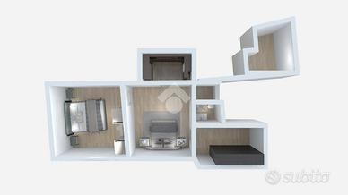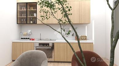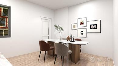 Le immagini presenti nell'annuncio includono rendering illustrativi che mostrano una possibile redistribuzione degli spazi interni.