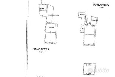 Attraverso la scala interna si accede al primo piano, dove sono presenti una camera di passaggio con ripostiglio, una camera matrimoniale, un bagno e un terrazzo.
