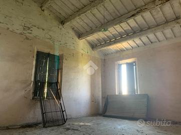 A 2 Km dal centro, in bella posizione, classica casa di campagna di ampia metratura da ristrutturare. La casa disposta su due piani è composta dal piano terra dove troviamo due ampie stanze e da una ampia zona sul retro corrispondente alla ex stalla e cantina dove si potrebbe realizzare un grande salone/taverna. Abbiamo poi una ulteriore parte da adibire a garage/magazzino. Salendo le scale arriviamo al primo piano dove troviamo quattro grandi camere da letto, più un ulteriore parte ad uso deposito corrispondente al vecchio fienile. Esternamente staccato dalla casa abbiamo un piccolo fabbricato accessorio ad uso di servizio/deposito. L'area cortiliva della casa misura circa 1500 mq, ma volendo può essere anche un pò ampliata. Considerando le dimensioni della casa, si può prestare molto bene anche a dividerla in due unità abitative per realizzare una soluzione per due nuclei familiari (genitori/figli, due fratelli, ecc.) LA CASA NON E' MAI STATA ALLUVIONATA