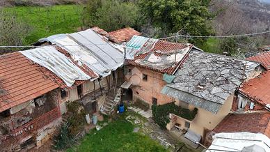 BRONDELLO in Località Bellini, due porzioni di rustico semindipendente elevate su due livelli. Gli immobili sono raggiungibili tutto l'anno tramite una strada secondaria sterrata a 200 metri di distanza dalla strada principale. Attualmente da ristrutturare quindi offrono la possibilità di essere personalizzati a proprio piacimento. Il cortile di fronte all'abitazione è comune con le altre unità abitative. I fabbricati sono accatastati come unità collabenti e quindi sono esenti dal pagamento dell'IMU. Completano la proprietà 14,16 giornate di terreno principalmente boschivo (castagneto).