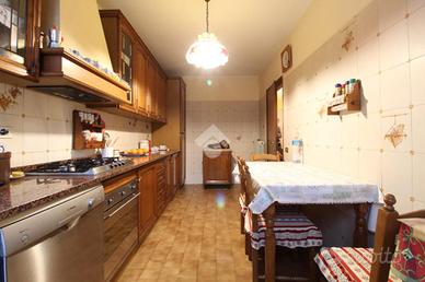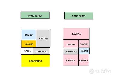L'abitazione si compone di piano terra: ingresso, pranzo/soggiorno, cucina, cantina e bagno; piano primo: cinque camere da letto, ripostiglio, e bagno; piano secondo: siffitta.