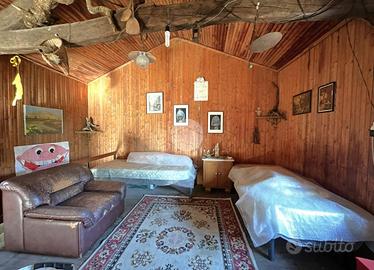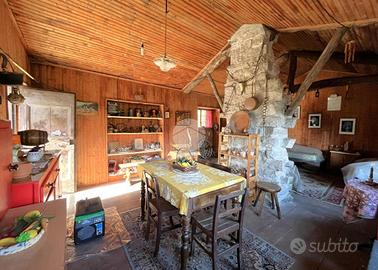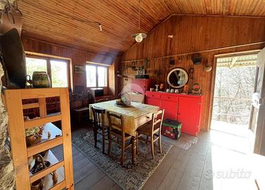 A completare la proprietà un WC esterno, con pozzo a perdere, una legnaia, un ripostiglio ed il terreno, in parte scosceso e in parte pianeggiante, di circa 6560 mq.