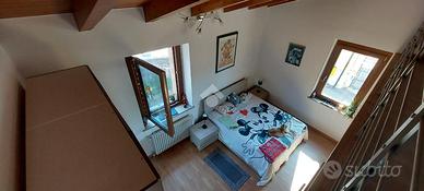 Al piano primo vi sono la seconda camera da letto matrimoniale ed il bagno padronale finestrato con box doccia. Completa l'immobile uno spazioso e pratico soppalco ora adibito a cabina armadio, ma sfruttabile anche come zona studio.