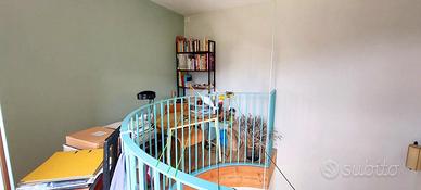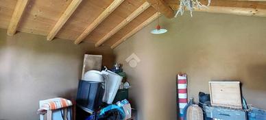 La casa è disposta su due piani: al piano terra troviamo uno spazioso soggiorno con zona cottura, un bagno di servizio e la cantina; al primo piano una grande camera matrimoniale, lo spazio biblioteca e un bagno. Affiancata alla casa una graziosa casetta in muratura da adibire a sala hobby o a taverna. Sul davanti della casa il giardino privato con una perfetta esposizione a sud ed una bellissima vista panoramica.