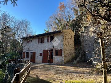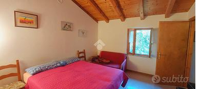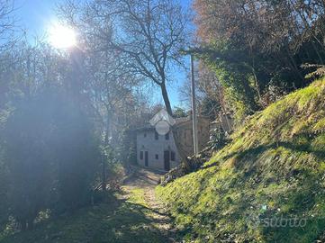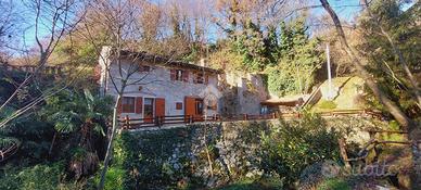 Circonda l'immobile un ampio terreno a balze di circa 3800 mq. in parte a corte prospiciente l'immobile, in parte ad uliveto ed in parte a bosco, attraversato da uno splendido ruscello.