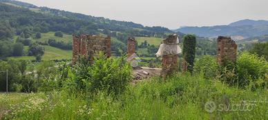 CA' BENNO: Molto comoda alla Fondovalle che dista solo un km, in piccola borgata, rudere, con la possibilita di costruire casa singola in posizione panoramica, con piano di circa 100 mq. Composta da: P.Seminterrato con garage di 40 mq., e taverna di 60 mq. che può diventare un mini, Piano terra con soggiorno, cucina, due camere, bagno, portico e balcone; Piano secondo mansarda con possibilità di due camere e bagno. Area cortiliva di circa 1600 mq. A 4,5 km da Ponte Secchia; 11 km da Roteglia; 22 km da Sassuolo.