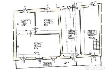 Nel pieno centro cittadino, fabbricato indipendente su due lati e sviluppato su tre livelli. Attualmente è così composto: al piano terra prendono spazio quattro locali, cinque al primo piano, mentre l'ultimo piano è contraddistinto dalla presenza degli archi. Il giardino antistante la proprietà, di ampie metrature, è privato ed esclusivo. Completano la proprietà due tettoie che possono essere utilizzate come rimesse auto.