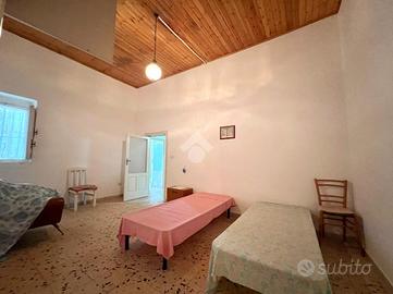 Con l'aiuto della piantina alla mano, presente nell'annuncio, è visibile che l'ingresso dalla veranda porta all'attuale bagno e ai tre vani con disimpegno e ripostiglio, per una metratura di +100mq; l'ingresso dalla parte opposta, invece, porta al forno esterno e ai quattro vani, per una metratura di +150mq. A completare la soluzione, un'utile rimessa con forno a legna.