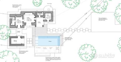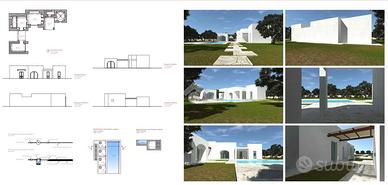 Il progetto prevede una villa di 90mq, e la realizzazione di una piscina di 40mq; un pergolato che collega una rimessa alla matrimoniale, bagno, una zona living di 15mq circa, ed un vano tecnico.