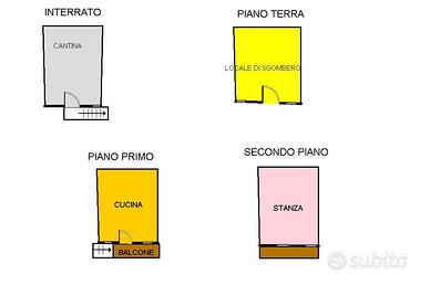 Completano la proprietà una cantina al piano interrato con accesso esterno e una corte esterna di circa 15 mq.