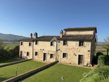 Località Promano: a poche centinaia di metri dal paese, nelle vicinanze di tutti i principali servizi, all'interno di un complesso costituito da più casali ristrutturati, casa a schiera con ingresso indipendente, di 116 Mq. ca, articolata su due livelli e composta da cucina, zona giorno, tre camere da letto, due bagni. Giardino privato sul fronte e sul retro della casa. Posti auto esterni. Ristrutturata, completa di cucina.