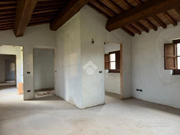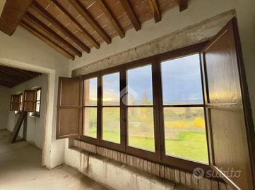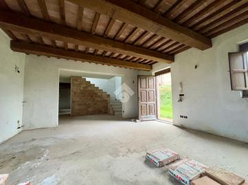 Promano: a poche centinaia di metri dal paese, nelle vicinanze di tutti i principali servizi, all'interno di un complesso costituito da più casali ristrutturati, fabbricato indipendente allo stato grezzo, composto da soggiorno, cucina abitabile, due camere singole, camera matrimoniale con cabina armadio e tre bagni. Porticato. Opere strutturali completate. Corte pertinenziale di circa 1200 Mq.