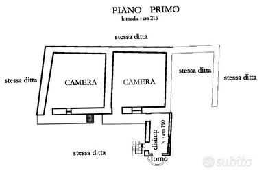 Il primo piano è raggiungibile tramite la scala in legno originale, che conduce a un balcone, punto di ingresso di una delle camere; un'altra camera si affaccia invece su un balcone in legno.