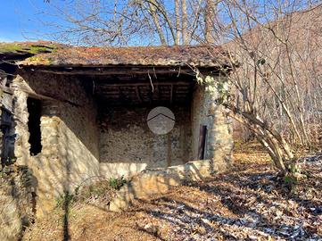 Completano la proprietà una tettoia adiacente all'abitazione e terreni circostanti, in parte boschivi .