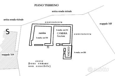 Al piano terra si trovano tre locali con accesso indipendente: una cantina, una cucina e una camera caratterizzata da volte in mattone.