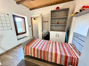 Una scala interna collega il piano superiore, dove sono presenti due ulteriori camere da letto e un secondo bagno di dimensioni contenute.