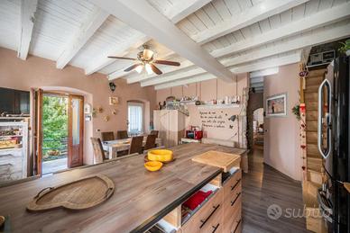 Al piano terra troviamo una splendida cantina a volto dell'epoca, sapientemente restaurata, perfetta per la conservazione dei vini o come spazio caratteristico da valorizzare. A fianco, un comodo ricovero attrezzi. Dallo stesso livello, una scala conduce all'interno dell'abitazione, che si apre con una cucina abitabile caratterizzata dalla presenza di un lavabo originale del rustico, elemento autentico e di grande fascino, e dalla zona pranzo, accogliente e luminosa.