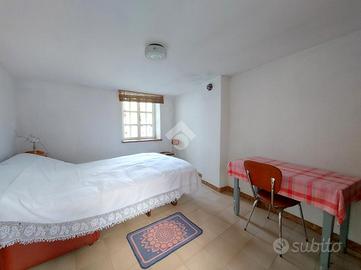 Il piano terra e suddiviso in una zona giorno accogliente, suddivisa tra una cucina funzionale e una camera. Il soffitto a volte con mattoni a vista conferisce calore e carattere all'ambiente, arricchito dalla presenza di un camino a legna e di una stufa, perfetti per le fredde serate invernali. Accanto alla zona giorno, si trova un piccolo bagno esterno che garantisce ulteriore comodità.