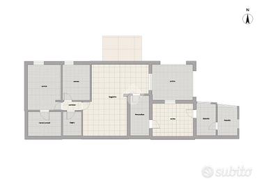 La casa ha due en trate, una dal portone del condomino composto da quattro alloggi senza spese condominiali e il secondo ingresso dal giardino.