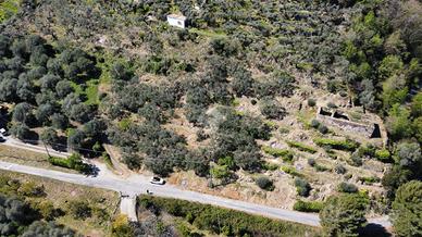 La proprietà è situata nelle colline di Dolceacqua, in posizione dominante e panoramica a soli 2,6 km dal caratteristico borgo medievale, uno dei più affascinanti dell'entroterra ligure. Immersa nella quiete della natura e circondata da tipici terrazzamenti liguri, la proprietà gode di una splendida vista aperta sulla valle e sulle colline circostanti, in un contesto di grande privacy e autenticità. Il terreno ha una superficie complessiva di 3.759 mq, in parte piantumato ad ulivi, con tipici muretti in pietra che caratterizzano il paesaggio rurale della zona. La morfologia del terreno e l'esposizione favorevole lo rendono ideale sia per uso agricolo sia per la realizzazione di una residenza di charme. All'interno della proprietà è presente un rudere in pietra di circa 98 mq, di cui è possibile sfruttare la cubatura esistente per la ricostruzione di un'abitazione mantenendo il fascino dell'architettura tradizionale ligure. Inoltre, una porzione del terreno mantiene indice edificatorio residuo, consentendo un possibile ampliamento volumetrico. La posizione garantisce facile accesso tramite strada, pur mantenendo un contesto naturale e riservato, ideale per chi cerca tranquillità senza rinunciare alla vicinanza al paese. Dolceacqua, situata nella suggestiva Val Nervia, è un borgo medievale noto per il suo celebre ponte antico, il Castello dei Doria e per la produzione del rinomato vino Rossese DOC. Il paese è riconosciuto tra i borghi più caratteristici della Liguria e attira visitatori da tutto il mondo per il suo fascino storico, il clima mite e la qualità della vita. Questa proprietà rappresenta una soluzione ideale per la realizzazione di una casa di campagna, una residenza privata o un progetto turistico, in uno degli scenari più suggestivi dell'entroterra ligure.