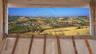 Rif: FRM-005 (192362764) - - FERMO - Nel Comune di Fermo, a due passi da Porto San Giorgio, l'Agenzia Immobiliare Gregori propone in vendita in posizione panoramica, con vista incredibile sul mare e sulla natura circostante, Villa di nuova costruzione immersa nel verde delle campagne marchigiane. La Villa si trova sul versante sud della Val'Ete, in una zona tranquilla e suggestiva, ideale per chi cerca pace e tranquillità senza rinunciare alla comodità dei servizi essenziali nelle vicinanze, infatti è facilmente raggiungibile, tramite comoda via asfaltata, il centro di Fermo in 15 minuti ed il centro di Porto San Giorgio in 8 minuti. La posizione è sicuramente tranquilla, ma non isolata, avendo residenze abitate nelle vicinanze. Questa splendida proprietà si compone di una bellissima villa recentemente edificata al nuovo e di vari accessori esterni, il tutto immerso nel suo versatile giardino. La struttura dell'abitazione è stata recentemente edificata con struttura portante in cemento armato di alta qualità a garantire solidità, durabilità nel tempo e sicurezza; La casa si svolge su quattro piani totali di cui due piani principali abitativi: al piano terra ed al piano primo a cui si sommano: il piano seminterrato, ad oggi pensato come zona garage, rimessa e rustico nonché l'ampia mansarda; va sicuramente sottolineato il fatto che si può godere dell'incredibile vista panoramica da tutti i piani della casa compreso il piano seminterrato, ma sicuramente spettacolari sono i terrazzi del piano primo. All'interno, l'abitazione è al grezzo avanzato offrendo la libertà di creare uno spazio abitativo su misura per l'acquirente e la sua famiglia i quali avranno la possibilità di scegliere: materiali, colori e il layout degli interni a creare l'ambiente desiderato. Gli accessi e la scala sono stati pensati affinché l'ultimazione interna possa interessare tutti i piani - Immobile non soggetto all'obbligo di certificazione energetica