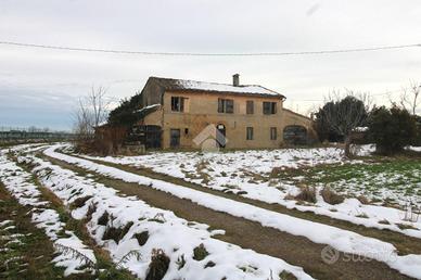 Nella frazione di S. Leonardo, immersa nella campagna ma a breve distanza da Forlimpopoli, proponiamo in vendita una casa colonica dalle generose metrature.