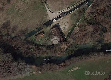 VECCHIO MULINO su due livelli con dependance il tutto su un isolotto sul fiume Mincio, con un ampio parco privato.