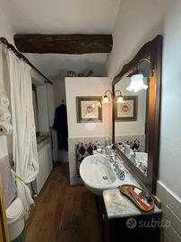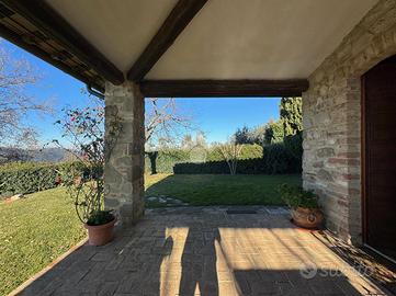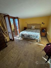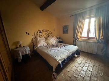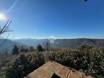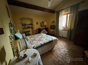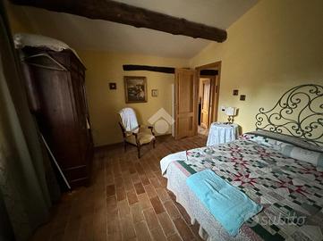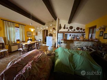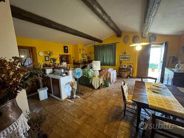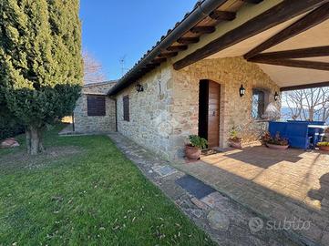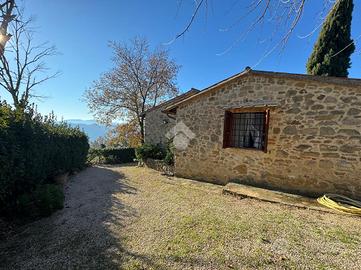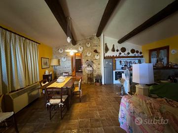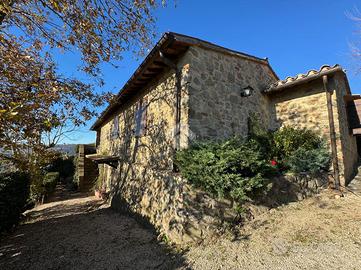 In una bellissima zona panoramica, tra le colline di Gualdo Cattaneo, vi proponiamo una caratteristica casa in pietra con pavimento in cotto e travi a vista.