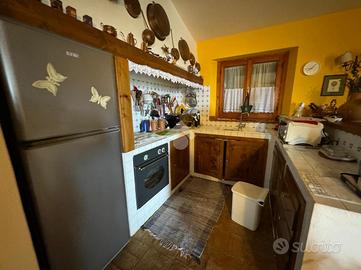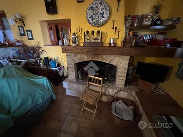 Al piano seminterrato troviamo una camera, una dispensa e una bagno; al piano terra invece abbiamo un portico, un soggiorno open space con camino e angolo cottura, 2 ampie camere e un bagno.