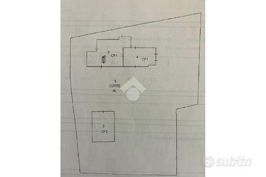 Attualmente la pianta riporta al piano terra 3 ampie stanze, bagno e cantina nella parte abitabile oltre alla stalla con colonne.