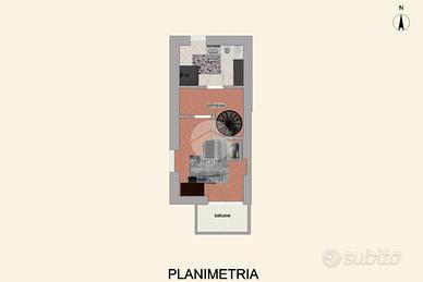 Internamente l'immobile si compone al piano terra di ingresso in soggiorno con cucina. Tramite una scala a chiocciola si raggiunge il primo piano composto da una camera matrimoniale, bagno finestrato con doccia e terrazzo.