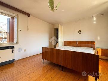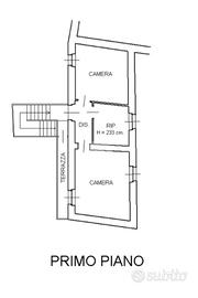 Casa di corte accostata su un lato, con giardino privato, ideale per chi cerca tranquillità e spazi da personalizzare. Al piano terra l'immobile accoglie con un ampio ingresso che conduce a una cucina abitabile, un soggiorno separato e un pratico ripostiglio. Tramite scale esterne si accede al primo piano, dove si sviluppa la zona notte composta da due spaziose camere matrimoniali e un ulteriore vano, attualmente adibito a ripostiglio, facilmente trasformabile in studio o stanza hobby. Completano la proprietà un bagno esterno e un comodo deposito. L'abitazione, risalente indicativamente alla metà del Novecento, rappresenta un'ottima opportunità per chi desidera realizzare una casa su misura, valorizzando al meglio gli spazi grazie alla metratura contenuta di circa 80mq interni e alla buona distribuzione.