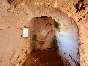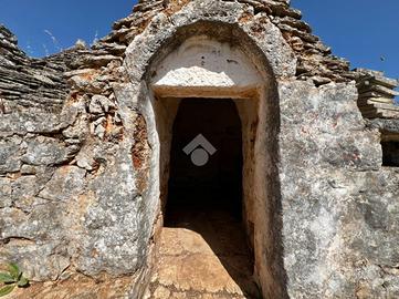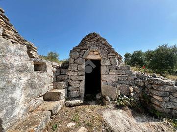 A property driveway of about 50 metres leads into the land and allows access to the structure we find on the left, consisting of a large four-cone trullo with high ceiling, original 'chianca' flooring, and a second attached trullo with a single cone.
