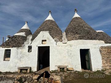 MARTINA FRANCA-STRADA SEPPELANARDO In Strada Seppelanardo, a circa 4,5km dal paese, proponiamo un affascinante corpo di trulli a sei coni immerso nella campagna pugliese, circondato da un terreno di circa 8000mq. La proprietà si presenta completamente da ristrutturare, offrendo ampie possibilità di personalizzare e valorizzazione secondo le proprie esigenze. Sono presenti due cisterne per la raccolta dell'acqua e vi è la possibilità di collegarsi all'acquedotto rurale; non è invece possibile effettuare l'allaccio all'Acquedotto Pugliese. L'ingresso è luminoso e introduce agli ambienti interni, dove si sviluppano tre stanze principali: una destinabile a zona giorno, una camera da letto e un piccolo bagno finestrato. La struttura a sei coni conferisce grande fascino e autenticità all'immobile, rendendolo ideale per chi desidera realizzare una residenza di campagna, una casa vacanze o un piccolo investimento turistico. Il terreno circostante garantisce privacy e tranquillità, con ampi spazi da destinare a giardino, area relax o coltivazioni, il tutto in un contesto naturale tipico della Valle d'Itria. Presso la nostra agenzia è possibile, su richiesta, grazie ai professionisti della società di mediazione creditizia del gruppo Kìron ricevere una consulenza ed accedere ad un'ampia gamma di prodotti creditizi e assicurativi. La consulenza è gratuita. Vieni a trovarci in ufficio, siamo in Via Bellini 43, per maggiori informazioni e seguici sui nostri canali social.