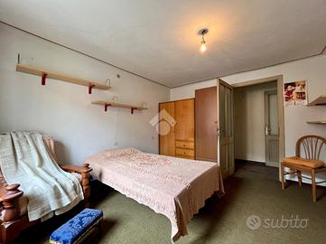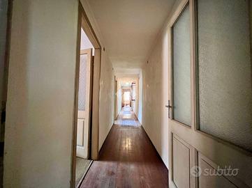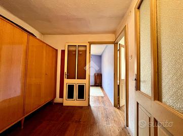 Al piano primo si viene accolti da un lungo corridoio che sviluppa le camere sulla sinistra come la classica disposizione dell'epoca di costruzione, il piano dispone di tre camere singole, un bagno con anti bagno, una cucina, un disimpegno con un ripostiglio e infine la camera matrimoniale.