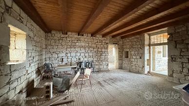 Con una superficie totale di circa 250 mq, dei quali 180 a piano terra e 70 a piano primo mansardato, l'immobile è attualmente al 70% di ristrutturato, permettendo così al nuovo proprietario di personalizzare gli spazi secondo i propri gusti. La ristrutturazione conservativa ha mantenuto intatto il carattere originale del casale realizzato con la tradizionale pietra bianca locale.