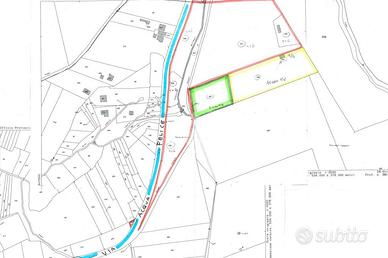 La proprietà si estende principalmente su terreni agricoli (oltre 4 ettari), caratterizzati da aree pianeggianti alternate a zone più irregolari. Sebbene il terreno risulti attualmente incolto e con una qualità produttiva non particolarmente elevata, offre un buon potenziale di sviluppo per chi desidera intraprendere attività agricole, allevamenti o altri progetti legati alla campagna. L'area è ben esposta e gode di una piacevole vista sul territorio circostante.