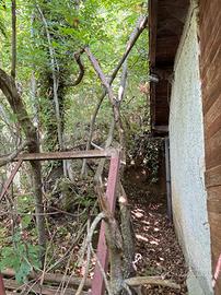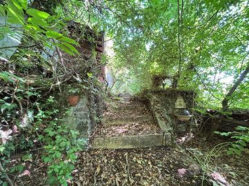La proprietà si compone di un terreno di circa 3.500 mq, caratterizzato da alberi ad alto fusto e vegetazione spontanea, ideale per chi desidera vivere nella tranquillità assoluta o intraprendere un progetto di rigenerazione nel verde.