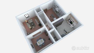 al piano terra si trova la zona giorno con salone doppio dotato di camino, cucina abitabile con ripostiglio e un bagno finestrato con vasca.