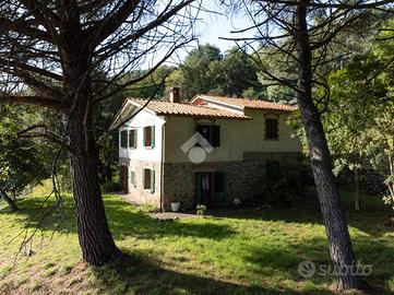 La proprietà è corredata da una spaziosa rimessa e da più di tre ettari di terreno privato, coltivato in parte a prato e in parte a uliveto, bosco e vigneto.