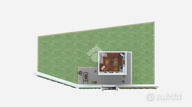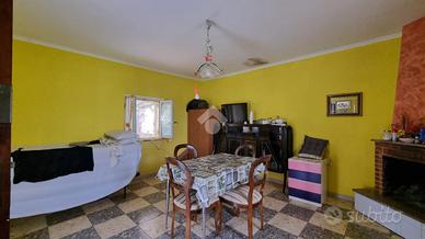 Esternamente il fabbricato è circondato dal terreno leggermente scosceso su tre lati e sul lato frontale, vicino l'ingresso, vi è una corte in cemento.