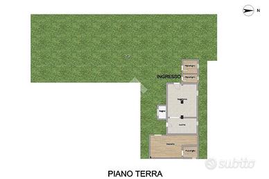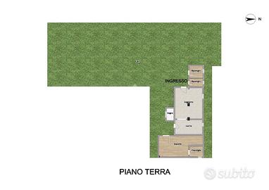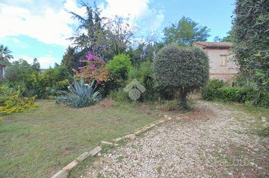 L'accesso al rustico avviene tramite un ingresso dalla Strada Nazionale, attraversando un rigoglioso giardino piantumato con alberi ornamentali, che offre un'oasi di tranquillità e bellezza naturale. Questo giardino non è solo uno spazio verde, ma rappresenta una potenziale area di sviluppo grazie al suo status di terreno edificabile, con un indice di edificabilità di 0,45 mq/mq e un'altezza massima consentita di 10,50 metri.