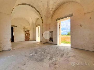 La casa situata nelle campagne di Nardò è immersa in un lotto di terreno di 9.000 mq, principalmente destinato a vigneto, anche se attualmente solo 2.500 mq sono ancora in produzione. Questo incantevole immobile presenta una combinazione affascinante di vani con volte a stella e vani con solaio dritto, offrendo un'estetica tradizionale e al contempo funzionale. La superficie interna dell'abitazione è di circa 100 mq, distribuiti in vari ambienti ben progettati.
