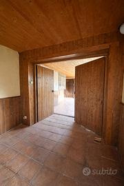 L'ingresso conduce a un ampio disimpegno che apre sulle ex mangiatoie, ambienti di notevole metratura e grande versatilità, ideali per essere trasformati in taverna, garage o spazi polifunzionali, con collegamenti interni diretti all'abitazione.