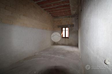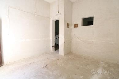 L'abitazione si sviluppa su due piani: al piano terra troviamo due ingressi indipendenti, uno dei quali conduce direttamente alla scala che collega il piano superiore, mentre l'altro dà accesso tramite un portone ad un locale utilizzabile ad uso grage in quanto fornito di saracinesca con altezza del tetto di 4 metri, da li si accede anche a vari locali con annsso una piccola area libera .