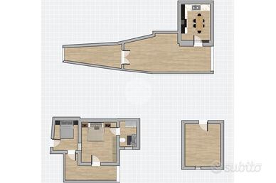 Salendo al piano superiore, si sviluppa la zona notte, composta da una camera doppia, una camera singola e un bagno finestrato con doccia.