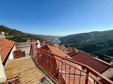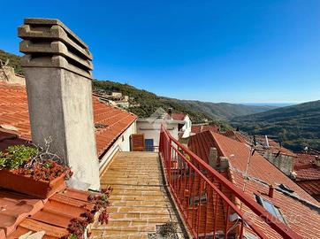 Nel cuore del borgo storico di Pietrabruna, caratteristico paese dell'entroterra a soli 10 km dal mare e dalla rinomata pista ciclabile della Riviera dei Fiori, proponiamo in vendita un rustico terracielo con ingressi indipendenti e splendidi affacci panoramici sulla vallata. L'abitazione si sviluppa su più livelli: al piano terra, con accesso diretto da pubblica via, troviamo una zona giorno composta da soggiorno con angolo cottura e bagno, oltre a un pratico ripostiglio. Una scala interna conduce al piano primo, dove si sviluppa la zona notte, composta da tre camere da letto e un ulteriore locale che può essere adibito sia a soggiorno che a quarta camera, oltre al secondo WC. La camera principale dispone di balcone con vista aperta sul borgo e sulle colline circostanti, mentre da una seconda camera si accede al terrazzino scoperto situato al piano secondo, esposto a sud-ovest: uno spazio ideale per momenti di relax all'aria aperta. A completare la proprietà, una ampia cantina al piano seminterrato, perfetta per ricovero attrezzi, biciclette o come taverna. L'immobile presenta alcuni lavori di ristrutturazione da prevedere, offrendo però grandi potenzialità per diventare una casa vacanze autentica e accogliente o una residenza per chi desidera vivere in un contesto tranquillo, genuino e comodo ai servizi del paese. Parcheggio pubblico nelle immediate vicinanze. Contattaci per fissare una visita.