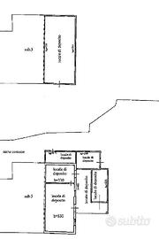Al piano terra troviamo cinque locali ad uso deposito, ben distribuiti e adattabili a diverse soluzioni progettuali in fase di ristrutturazione.